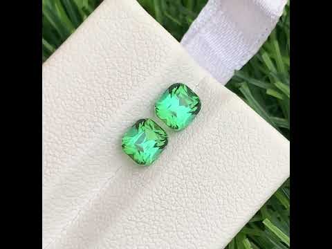 Bright Bluish Green Tourmaline Pair – 1.85 Carats | Cushion Cut | Rear Tourmaline Pair