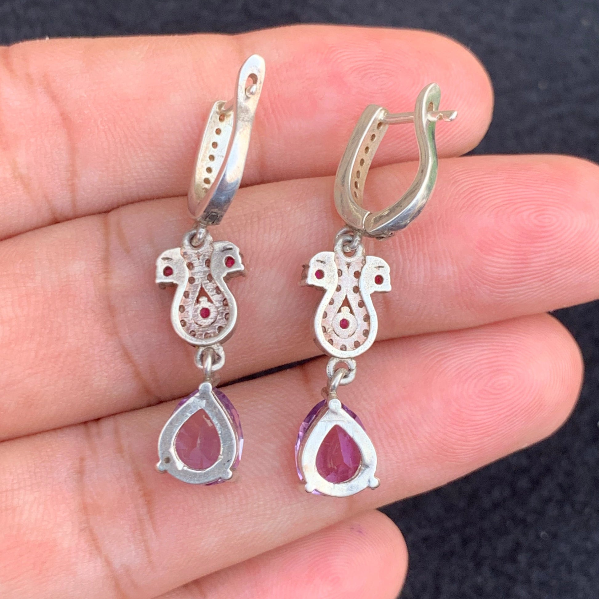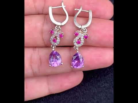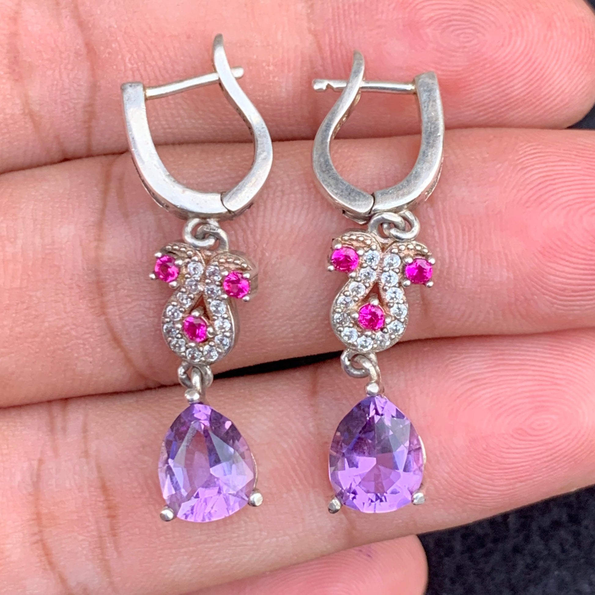 Exquisite Pink Purple Amethyst Silver Earring – A Unique Handmade Gemstone Jewelry
