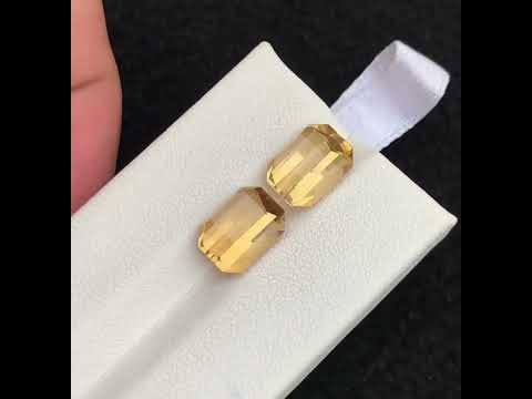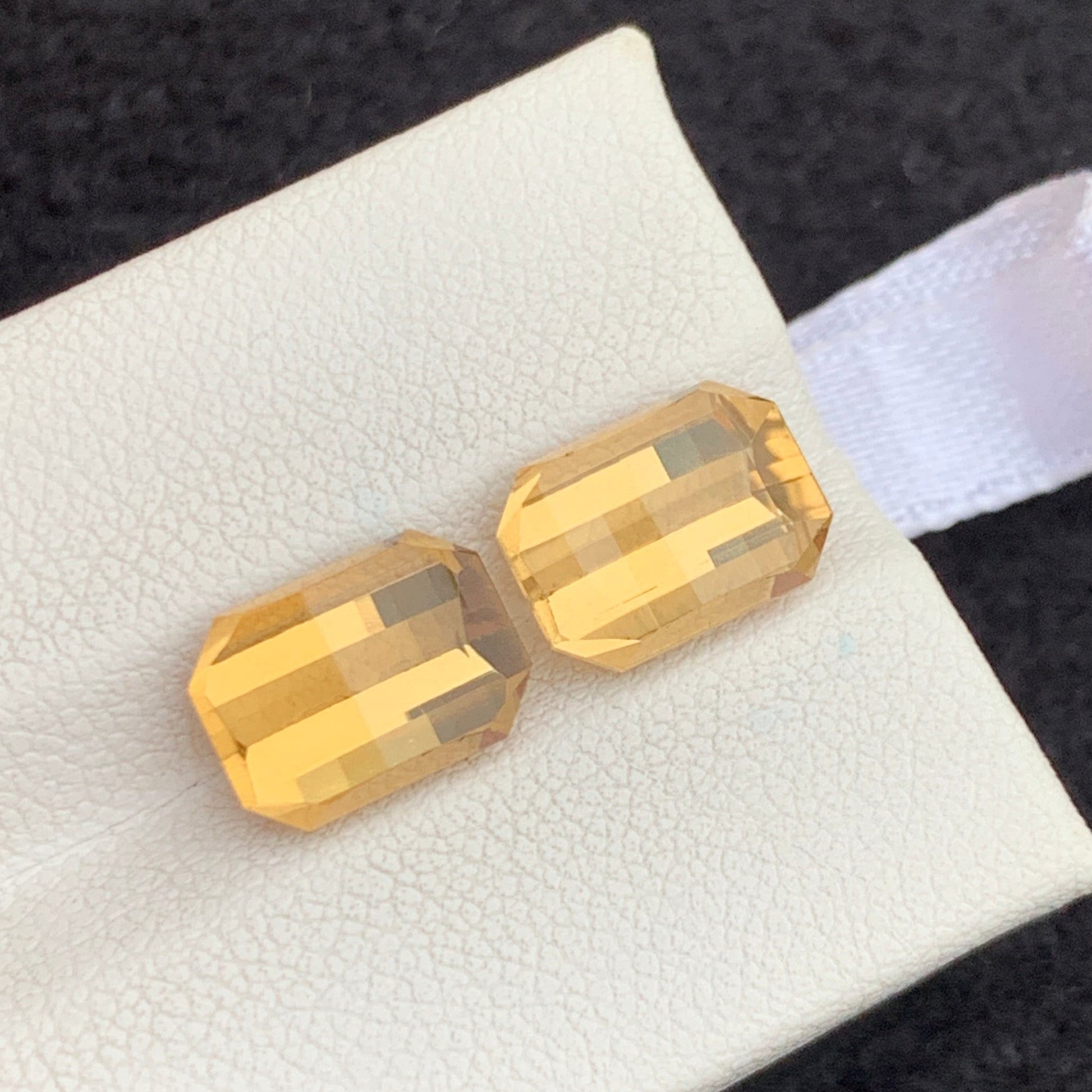 Adorable Loose Yellow Citrine Pair - 7.20 Carats with from Brazil, Pixel Shape Yellow Citrine Pair