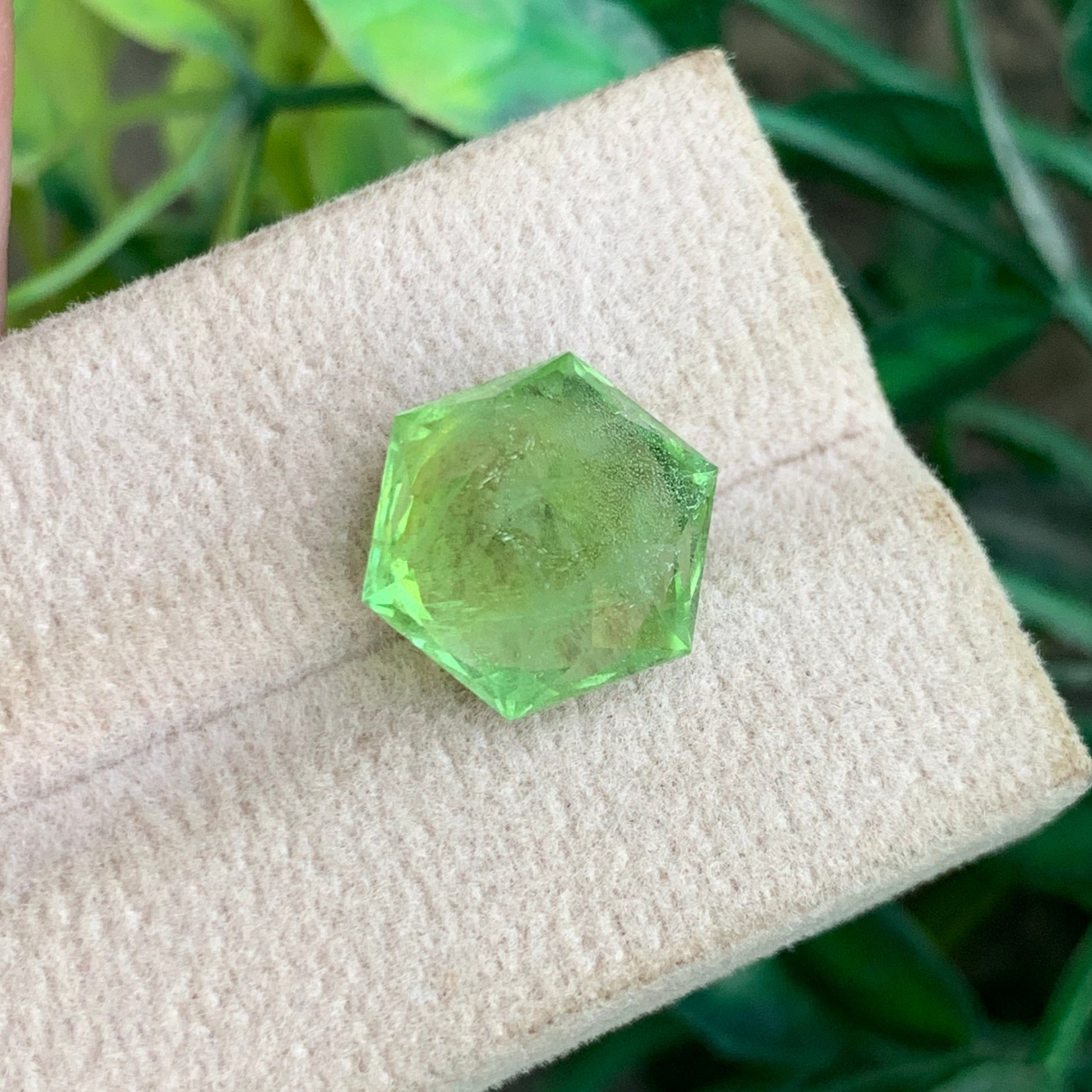 Fine Jewelry: This 9.30 carat hexagonal cut Peridot is an excellent centerpiece for bold rings, pendants, and statement pieces, showcasing both size and brilliance.