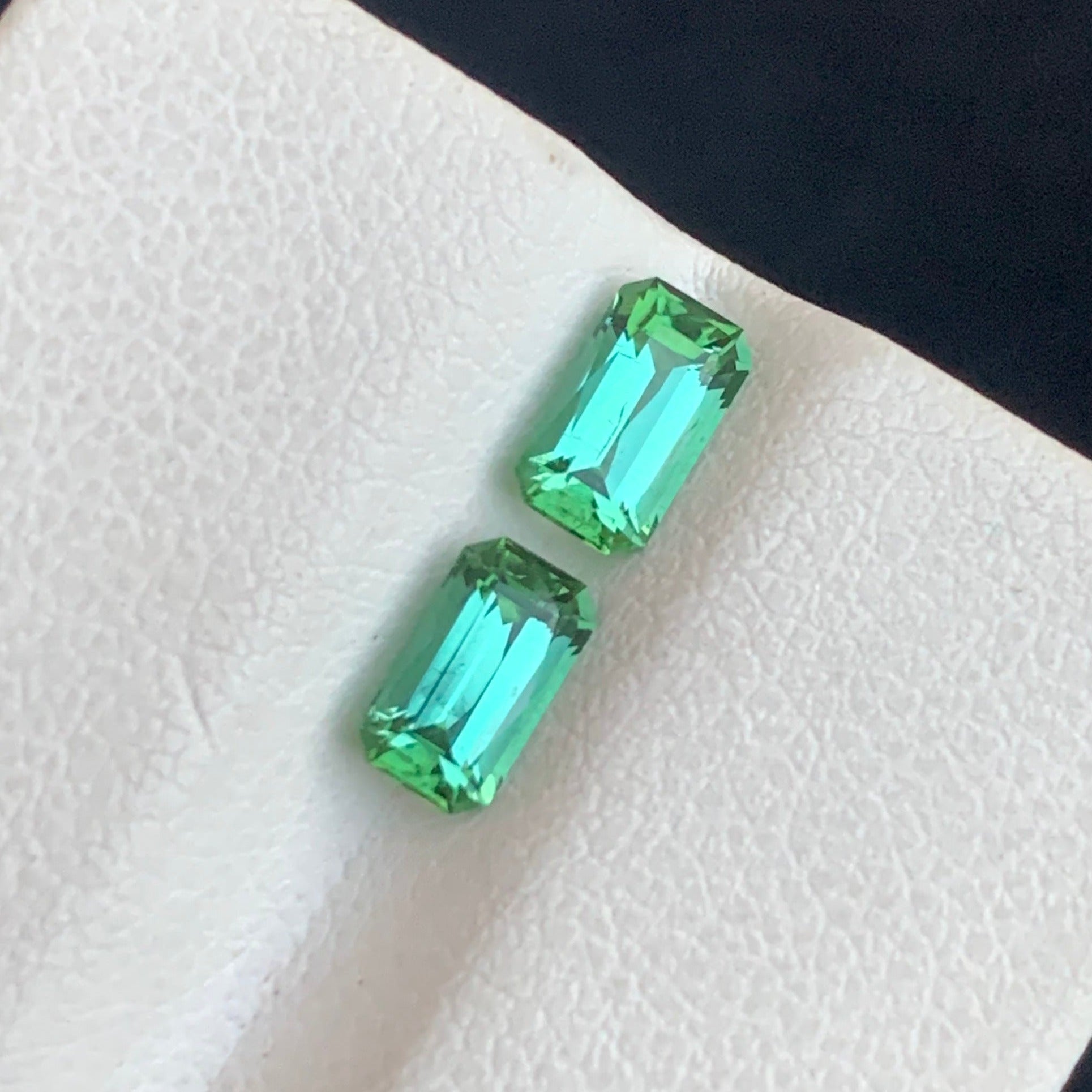 Natural Bluish Green Tourmaline Pair, Scissor Cut 1.15 Carats, Mint Green Earring Pair